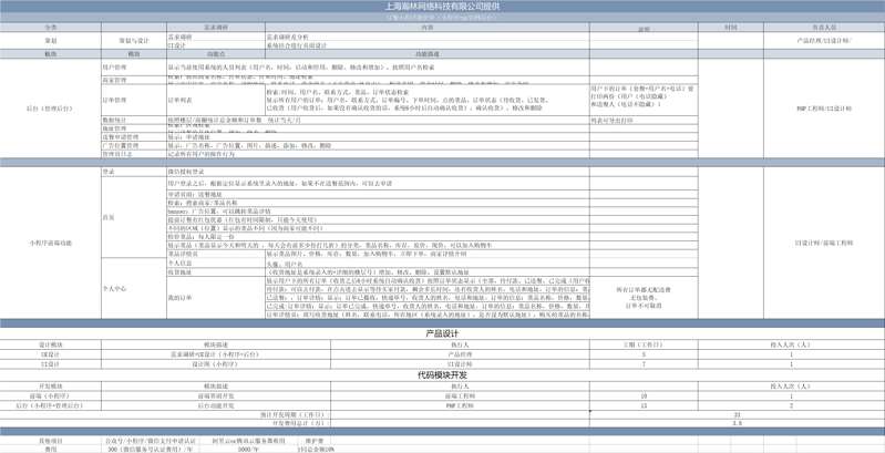 微信小程序外包價目表 小程序開發(fā)詳細(xì)報價單模板