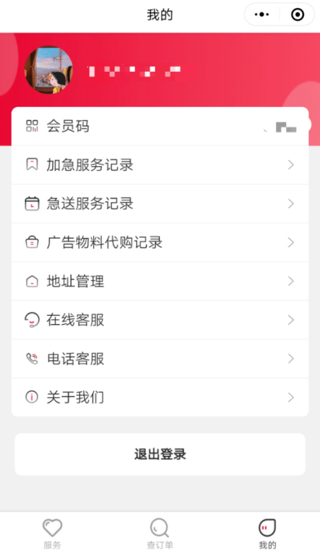 用戶注冊登錄、我的訂單、急送服務、設計服務、加急服務、安裝服務、廣告物料代購、查詢訂單、會員卡、地址管理、電話客服、關于我們等功能。
