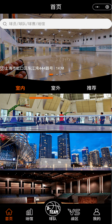 客戶端共五個模塊(首頁、場館、球隊、戰區、我的),實現了簡單便捷的需求。其中球隊這個模塊也給顧客提供了一些樂趣,可以自由組隊,隊伍之前可以進行比賽約戰。