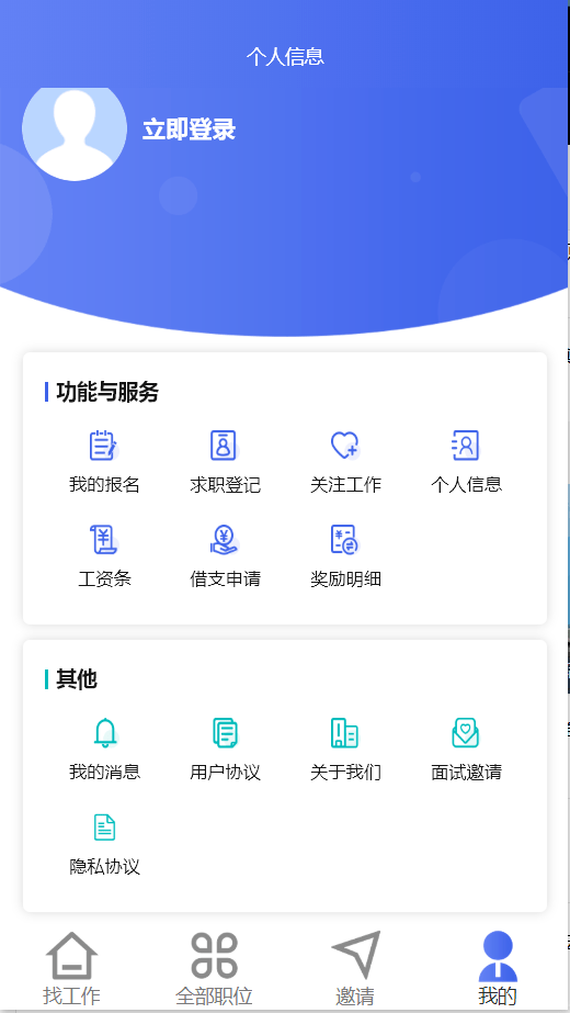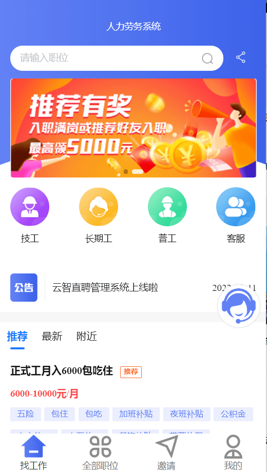 勞務公司招聘小程序,解決招工難,留人難,管理難問題;一站式構建面向員工的小程序,員工領薪、預支、面試、考勤、日薪日結、入離職,均在一個小程序,私域流量沉淀更便捷。
