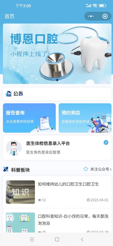 口腔門診醫院預約到店和報告查詢小程序開發方案