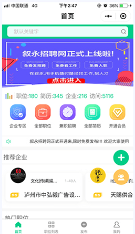 人力資源勞務同城招聘兼職小程序,微信求職招聘小程序開發制作平臺系統 。微信招聘小程序是一款針對綜合性的招聘應用、以及垂直行業企業招聘,適用于更多的應用場景讓招聘小程序增加商業價值,致力于解決企業招募人才難與求職者找工作難的問題。